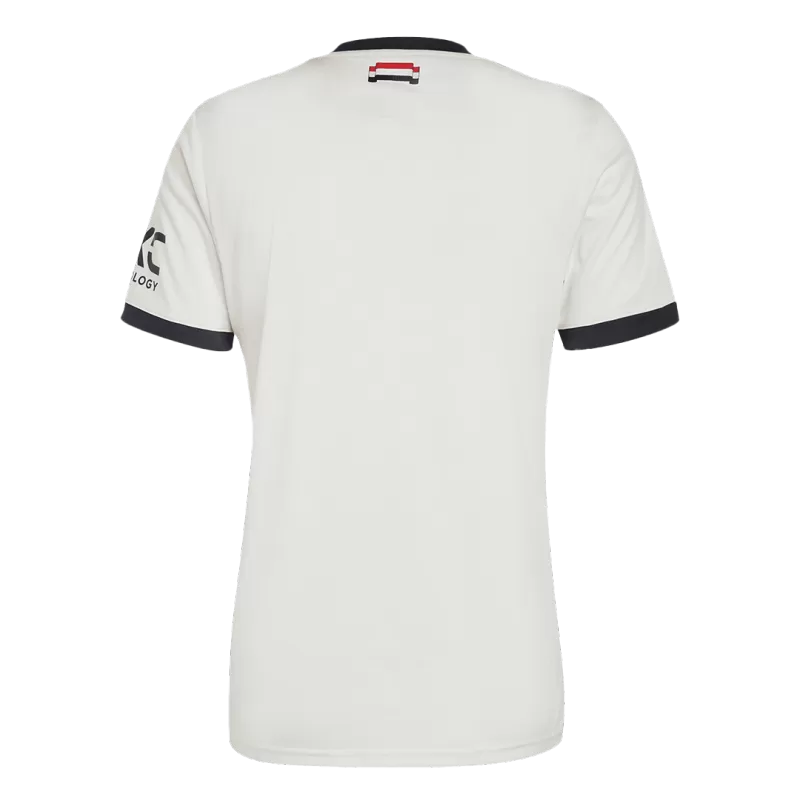 Show your pride in Manchester United and wear the third set of Manchester United’s 2024/25 season jerseys when you are at home. This jersey uses white, red and black stripes to form the pattern of the club flag. This tight jersey is made of lightweight breathable polyester recycled material, providing cool comfort. It is equipped with short sleeves and a round collar, and is equipped with HEAT.RDY technology to sweat. The chest is printed with the three-leaf logo and the Manchester United emblem.